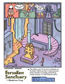 Abandoned ruins of a long forgotten utopia. This city was built by an ancient civilization that worshipped 8-bit gods and believed the land to be sacred. When the volcano it was built around erupted, it killed them all and left these dungeons empty for centuries. These days, Zobius uses these old chambers as a second stronghold.